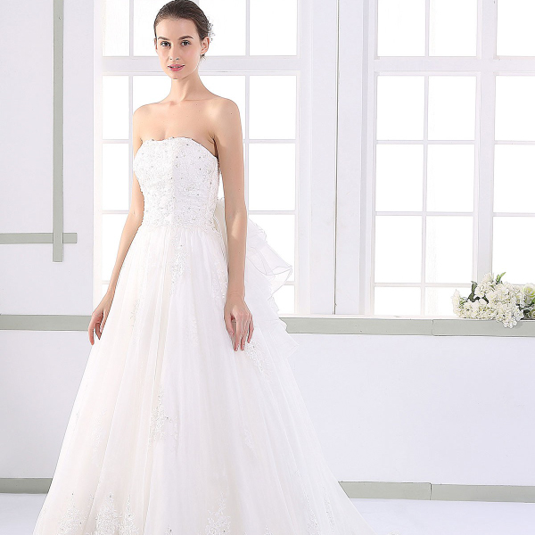 装飾:レースアップリケ, ビーズ, 取り外し可能なトレーン
